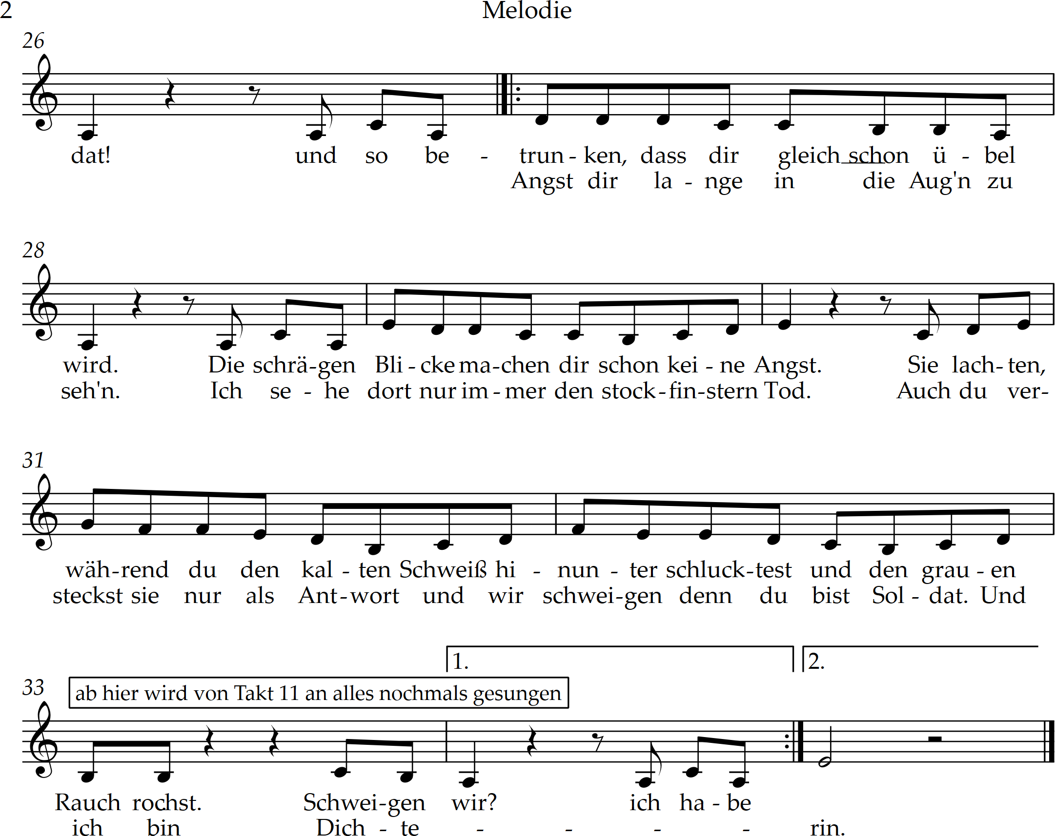 eine linguistische Analyse des unveröffentlichten Liedes Du bist Soldat erhalten haben.“ Das Repertoire der
